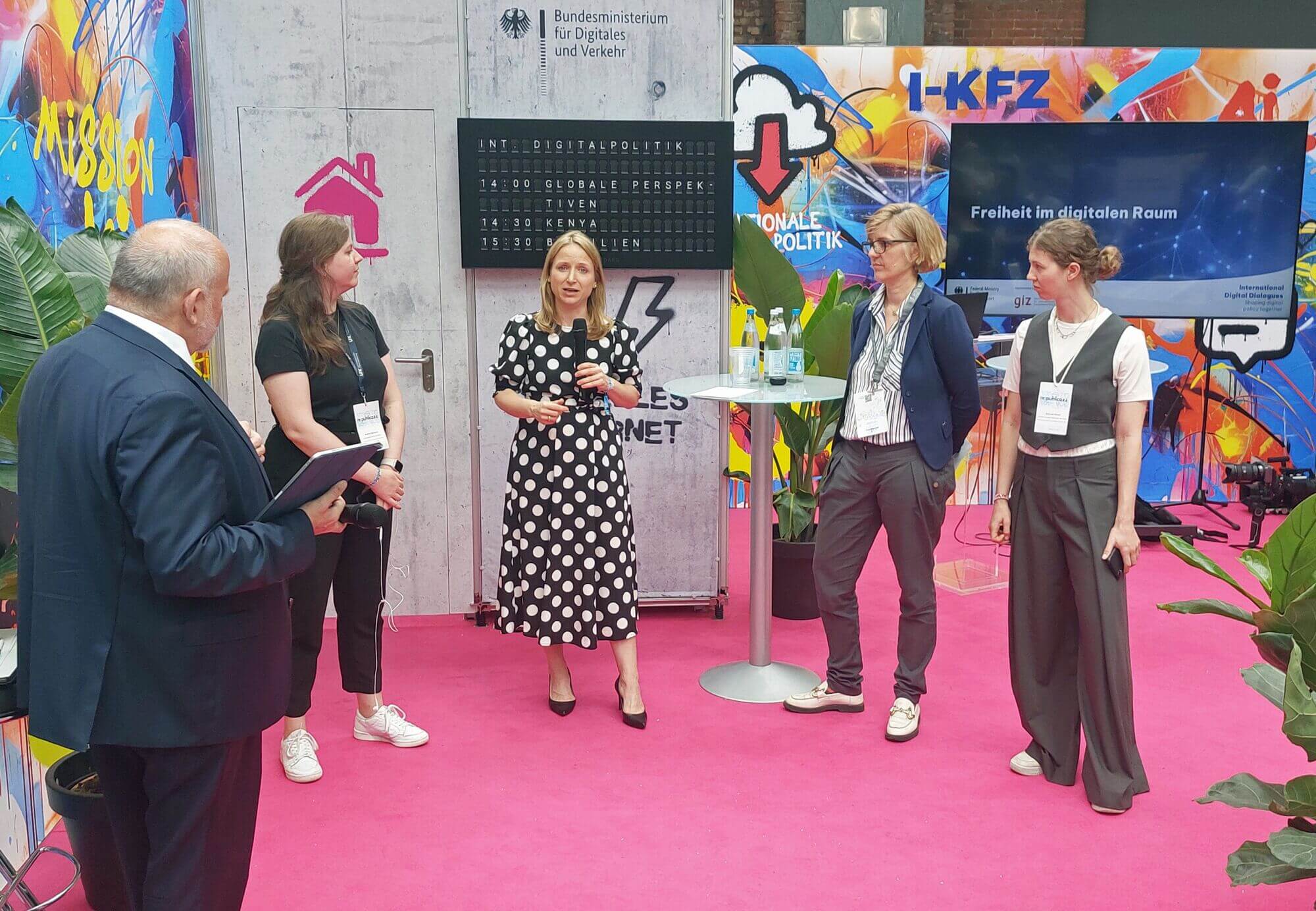 Anschließend sprach das BMDV mit Kathrin Morasch, Mitglied im Steering Committee des Internet Governance Forum (IGF) Deutschland, Zoë van Doren, Referentin Globale Digitalisierung und Innovation bei der Friedrich-Neumann-Stiftung, und Friederike von Franqué, Referentin EU und Internationale Regelsetzung bei Wikimedia.