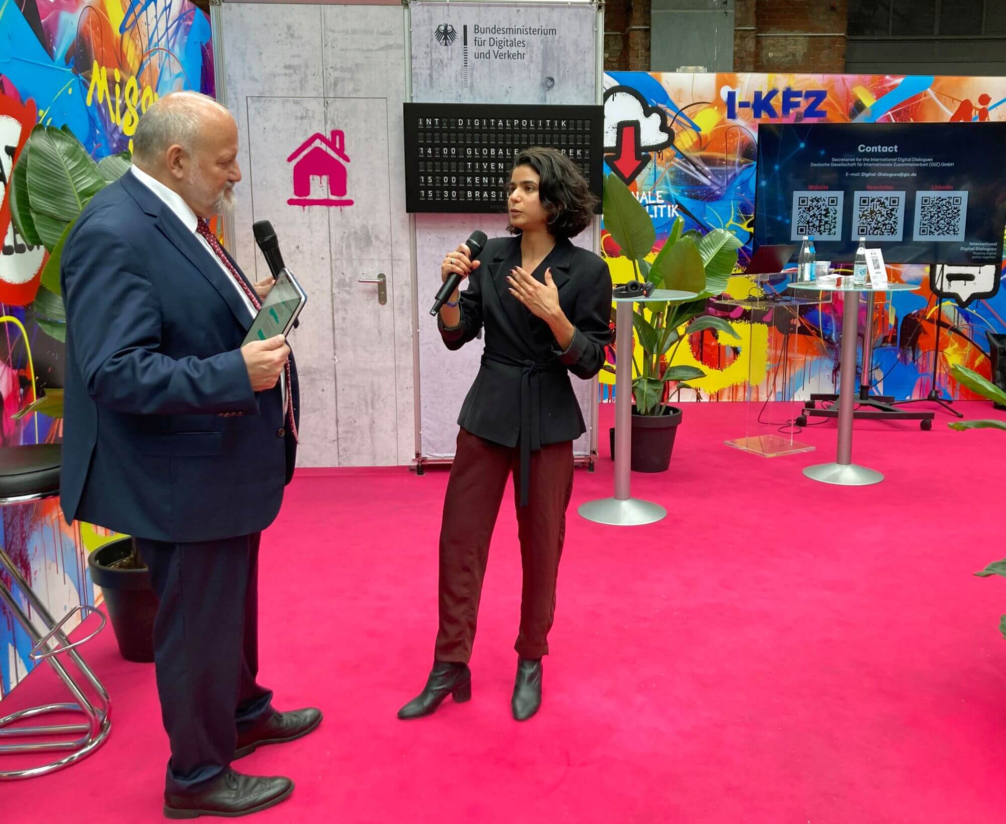 Das BMDV brachte mit seinen Standgesprächen eine internationale Perspektive ein. Am 28. Mai veranstaltete es drei Gesprächsrunden mit Expertinnen und Experten aus der deutschen Zivilgesellschaft sowie aus den Partnerländern der Internationalen Digitaldialoge. Moderiert wurden diese von Heiko Wildner, Referent für Internationale Digitalpolitik im BMDV.