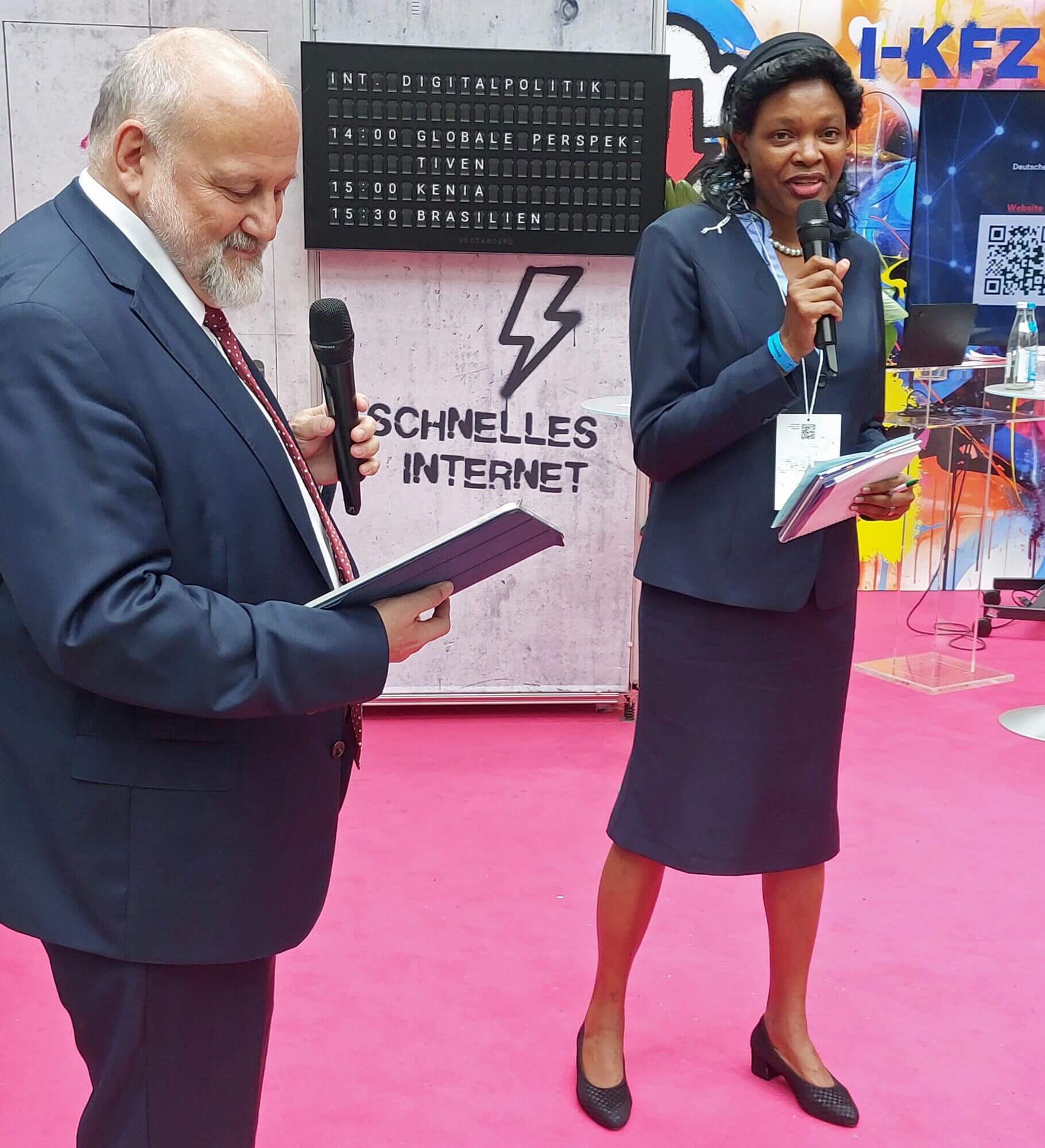 Gemeinsam sprachen sie darüber, welche Potenziale die Zusammenarbeit der beiden Länder bietet. Insbesondere in der Digitalwirtschaft und bei IT-Fachkräften sehen sie große Komplementaritäten. Die kenianische Botschafterin gab außerdem spannende Einblicke in die Herausforderungen und Chancen, die sich ihrer Meinung nach aus der globalen Vernetzung ergeben, und erläuterte, wie Kenia zur Förderung einer inklusiven digitalen Zukunft beiträgt.