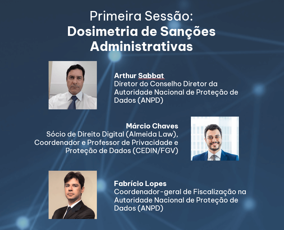 The panel was composed of the Director of ANPD, Arthur Sabbat, the General Coordinator of Inspection, Fabrício Guimarães Lopes, and the Professor of Privacy and Data Protection and Partner at Almeida Law Firm, Márcio Chaves. They discussed the timeline of the regulatory process as well as the main expectations from both ANPD and the private sector.