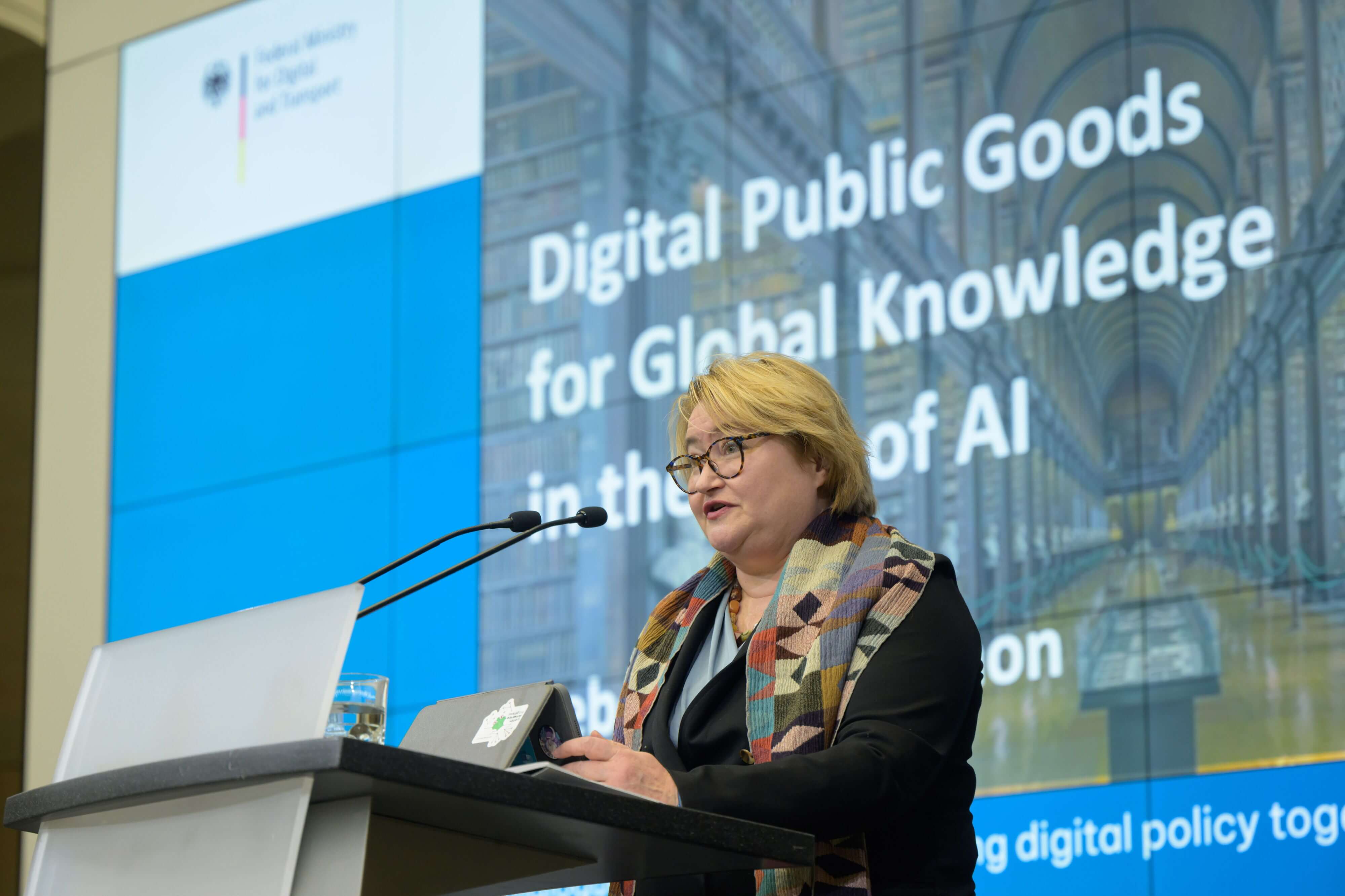 "Digitalisation knows no borders" – these were the words with which Federal Minister Dr Volker Wissing opened the conference. He emphasised not only the importance of international cooperation but also the necessity of bilateral coordination to achieve a free internet. Rebecca MacKinnon, Vice President for Global Advocacy at the Wikimedia Foundation, proceeded with her keynote „Digital Public Goods for Knowledge in the Age of AI” followed by specialised discussions in the working groups of the IDDC. These discussions covered four thematic areas: